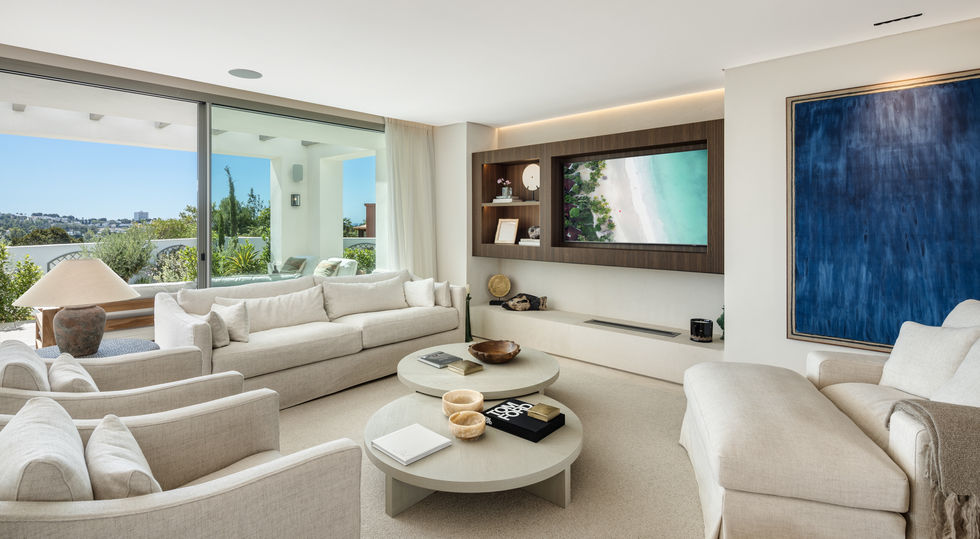 A fully renovated Mediterranean masterpiece in the heart of La Quinta, Benhavis designed by the renowned Jorge Rincón Wong and built by AM Construcciones. This villa offers breathtaking views of La Concha mountain, set on a spacious plot with a beautifully landscaped garden by Adarve. The outdoor area features a private pool with elegant glass mosaic finishes, expansive terraces perfect for alfresco dining and relaxation, and an outdoor kitchenette with a BBQ.